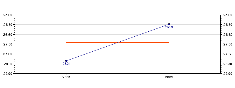 | Forrige tid | 26.29 (2002) |