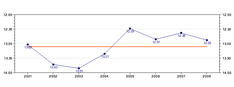 2002Kalkulator13:43 (1318 m/h)02:03 (1574 m/h, 119 %)06:23 (04:20, 1269 m/h, 96 %)11:56 (05:33, 1235 m/h, 93 %)13:43 (01:47, 1399 m/h, 106 %)