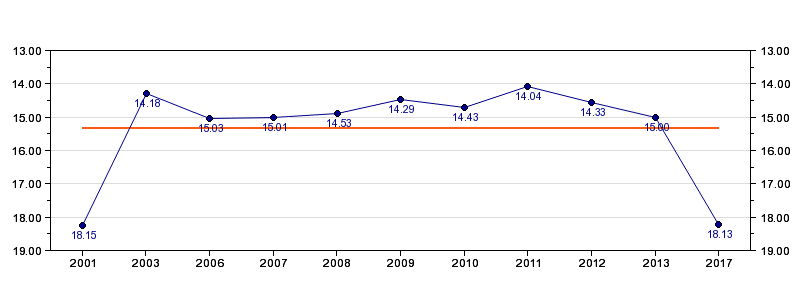 | Forrige tid | 18.13 (2017) |