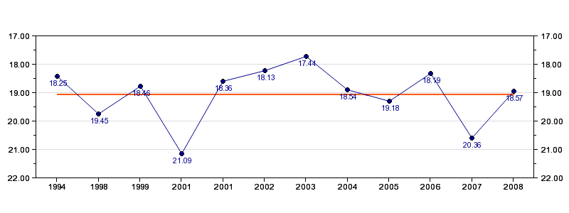 Antall deltagelser12 (i perioden 1994 - 2008)