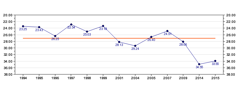 | Antall deltagelser | 13 (i perioden 1994 - 2015) |