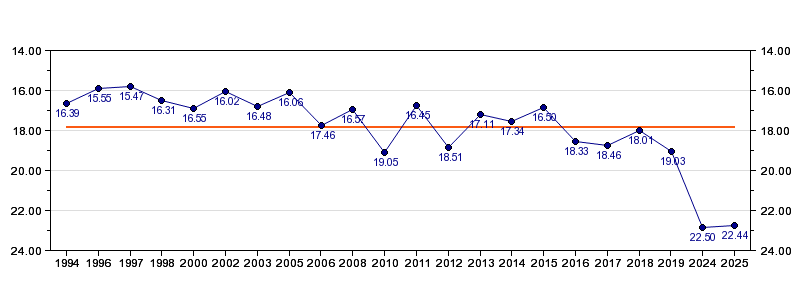 | Antall deltagelser | 22 (i perioden 1994 - 2025) |