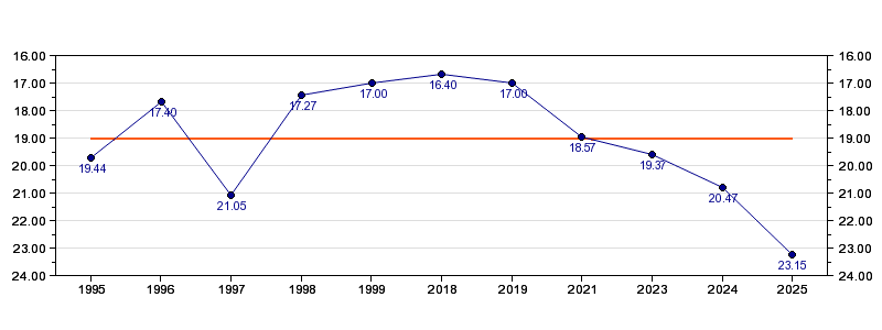 | Antall deltagelser | 11 (i perioden 1995 - 2025) |