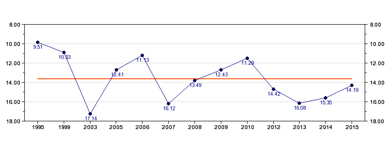 | Antall deltagelser | 13 (i perioden 1995 - 2015) |