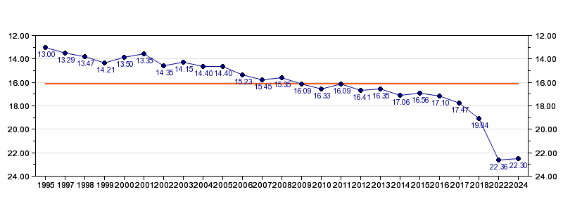 Antall deltagelser25 (i perioden 1995 - 2024)