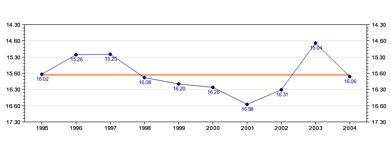 Antall deltagelser10 (i perioden 1995 - 2004)
