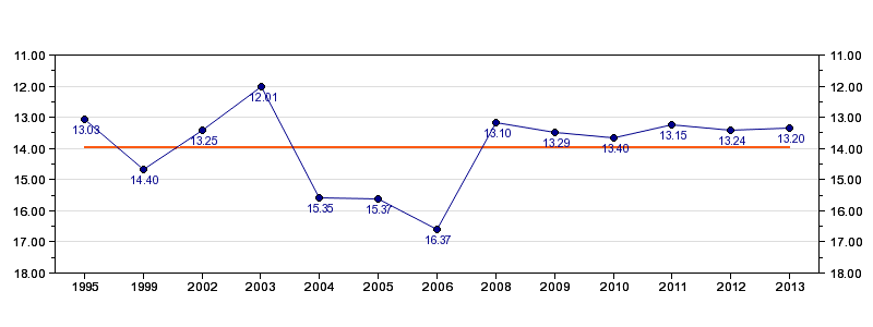 | Antall deltagelser | 13 (i perioden 1995 - 2013) |