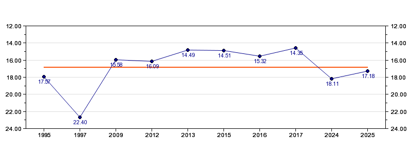 | Forrige tid | 17.18 (2025) |