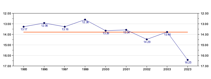 | Forrige tid | 16.25 (2023) |