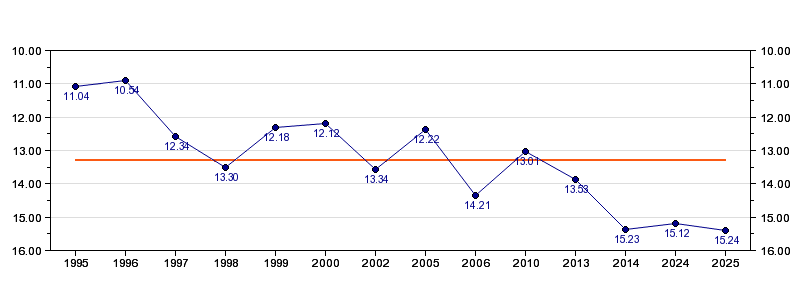 | Antall deltagelser | 14 (i perioden 1995 - 2025) |