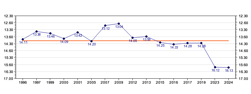 Antall deltagelser16 (i perioden 1996 - 2024)