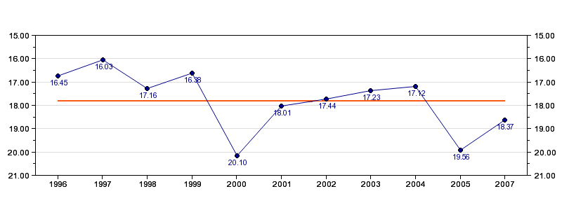 2007Kalkulator18:37 (971 m/h)03:09 (1024 m/h, 105 %)08:51 (05:42, 965 m/h, 99 %)16:12 (07:21, 933 m/h, 96 %)18:37 (02:25, 1032 m/h, 106 %)