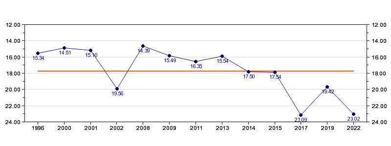 | Antall deltagelser | 13 (i perioden 1996 - 2022) |