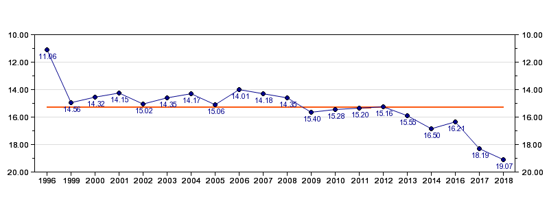 | Antall deltagelser | 20 (i perioden 1996 - 2018) |