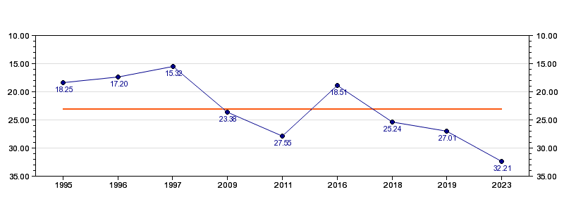 | Antall deltagelser | 9 (i perioden 1995 - 2023) |