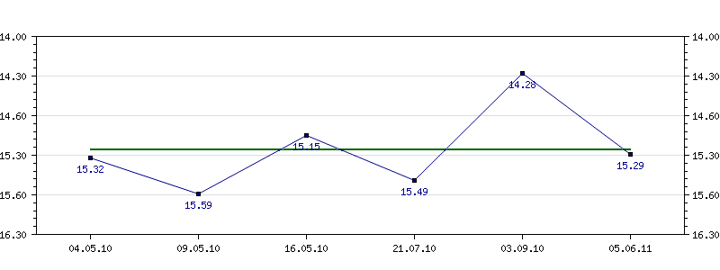 | 04.05.2010 | 15.32 | 09.05.2010 | 15.59 | 16.05.2010 | 15.15 | 21.07.2010 | 15.49 | 03.09.2010 | 14.28 | 05.06.2011 | 15.29 |