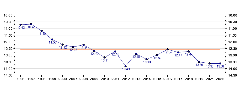 | Forrige tid | 13.38 (2022) |