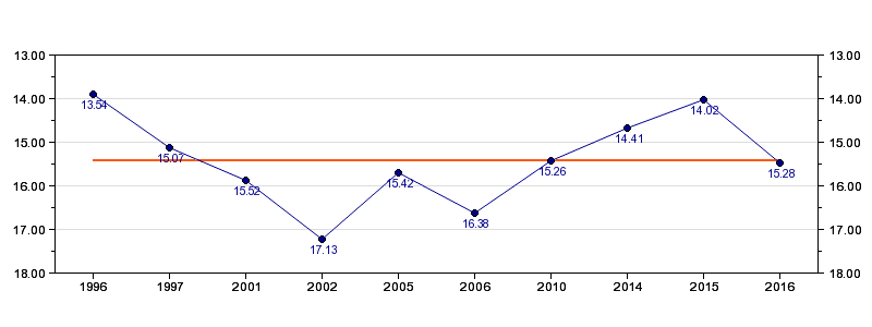 | Forrige tid | 15.28 (2016) |