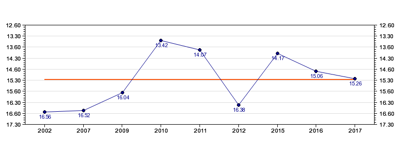 | Forrige tid | 15.26 (2017) |