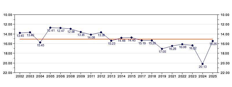 Antall deltagelser20 (i perioden 2002 - 2025)