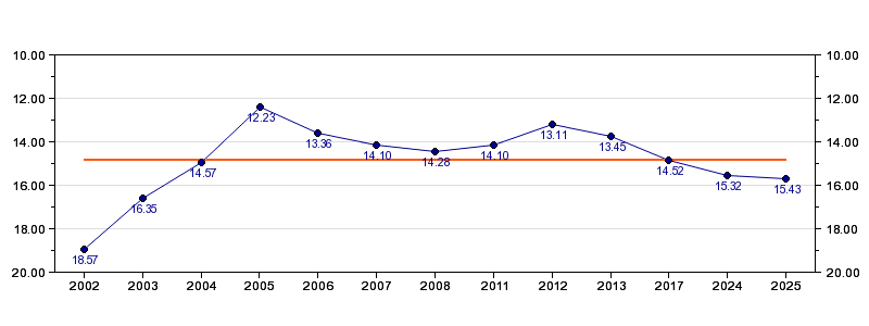 | Forrige tid | 15.43 (2025) |