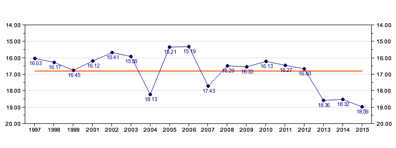 Antall deltagelser18 (i perioden 1997 - 2015)