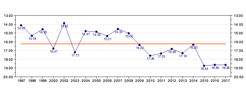 | Antall deltagelser | 20 (i perioden 1997 - 2017) |