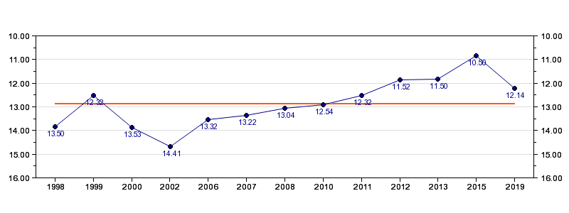 | Antall deltagelser | 13 (i perioden 1998 - 2019) |