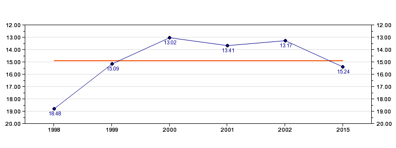Antall deltagelser6 (i perioden 1998 - 2015)