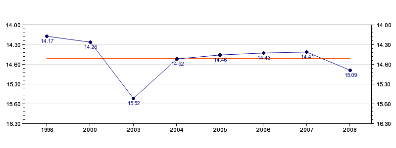 Antall deltagelser8 (i perioden 1998 - 2008)