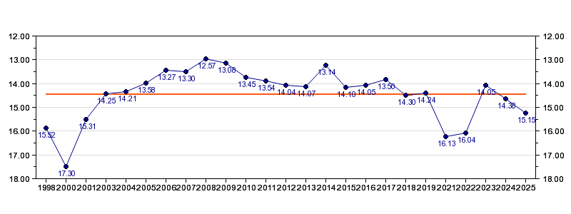 Antall deltagelser25 (i perioden 1998 - 2025)