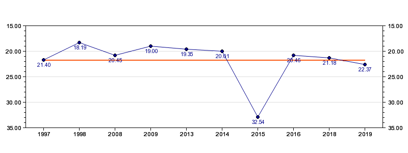 Antall deltagelser10 (i perioden 1997 - 2019)