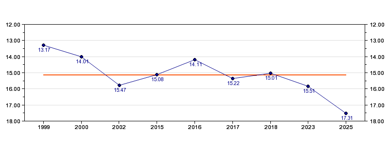 | Forrige tid | 17.31 (2025) |