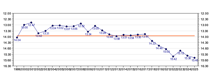 Antall deltagelser26 (i perioden 1999 - 2025)