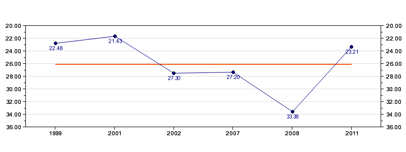 2011Kalkulator23:21 (774 m/h)03:12 (1008 m/h, 130 %)10:01 (06:49, 807 m/h, 104 %)20:25 (10:24, 659 m/h, 85 %)23:21 (02:56, 850 m/h, 109 %)