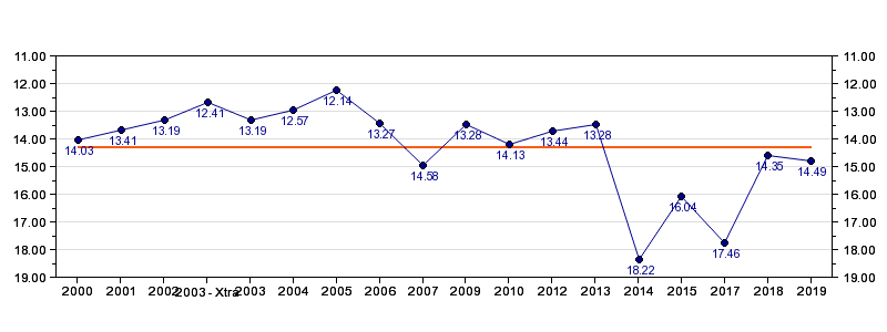 2019Kalkulator14:49 (1220 m/h)02:34 (1257 m/h, 103 %)07:14 (04:40, 1179 m/h, 96 %)13:10 (05:56, 1155 m/h, 94 %)14:49 (01:39, 1512 m/h, 123 %)