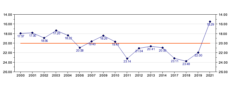 Antall deltagelser17 (i perioden 2000 - 2021)