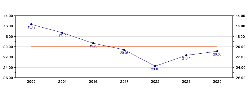 Antall deltagelser7 (i perioden 2000 - 2025)