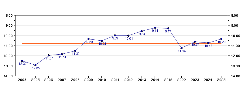 | Forrige tid | 10.20 (2025) |