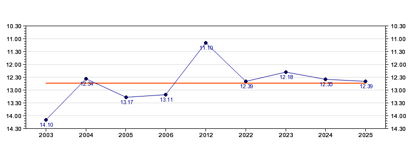| Forrige tid | 12.39 (2025) |