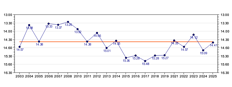 | 2025 | Kalkulator | 14:41 (1231 m/h) | 02:36 (1241 m/h, 100 %) | 07:03 (04:27, 1236 m/h, 100 %) | 12:51 (05:48, 1182 m/h, 96 %) | 14:41 (01:50, 1361 m/h, 110 %) |
