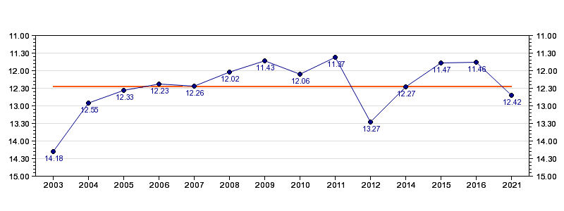 | Forrige tid | 12.42 (2021) |