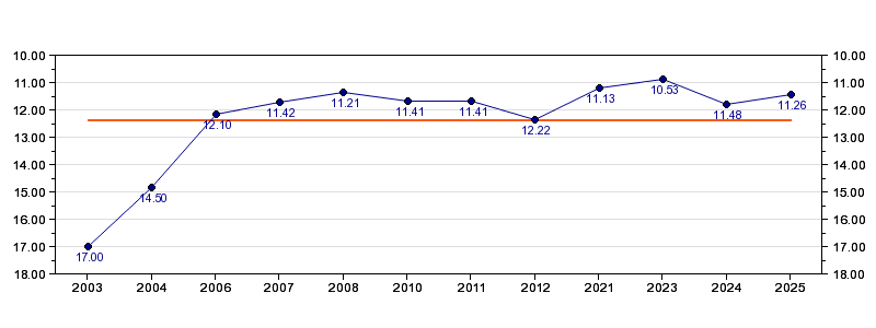 Antall deltagelser12 (i perioden 2003 - 2025)