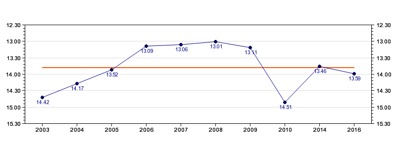 2016Kalkulator13:59 (1293 m/h)02:23 (1354 m/h, 104 %)06:54 (04:31, 1218 m/h, 94 %)12:24 (05:30, 1246 m/h, 96 %)13:59 (01:35, 1576 m/h, 121 %)