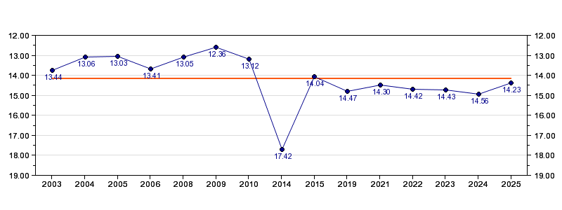 | Forrige tid | 14.23 (2025) |