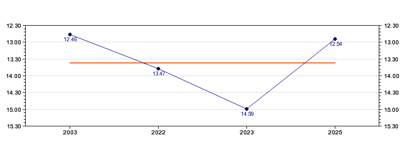 Antall deltagelser4 (i perioden 2003 - 2025)