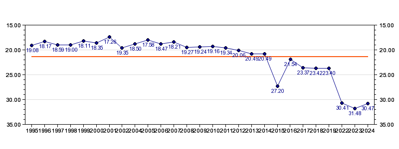 Antall deltagelser27 (i perioden 1995 - 2024)