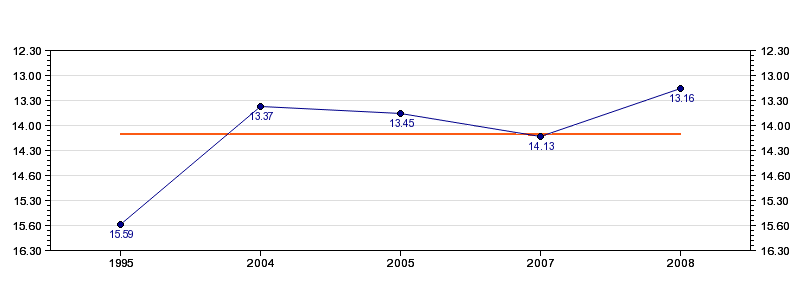 | Forrige tid | 13.16 (2008) |
