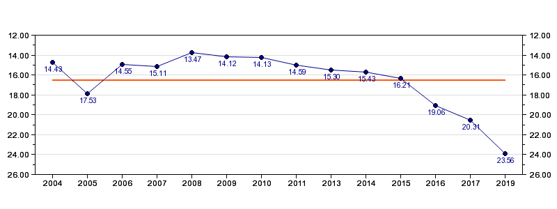 | Antall deltagelser | 14 (i perioden 2004 - 2019) |