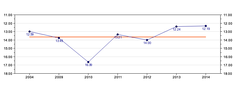 | Forrige tid | 12.19 (2014) |